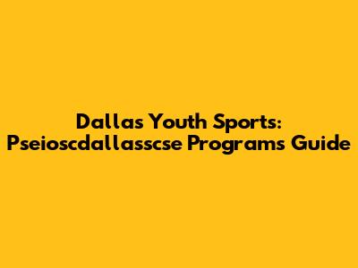 Dallas Youth Sports: Pseioscdallasscse Programs Guide