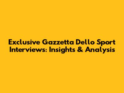 Exclusive Gazzetta Dello Sport Interviews: Insights & Analysis