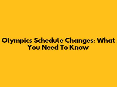 Olympics Schedule Changes: What You Need To Know