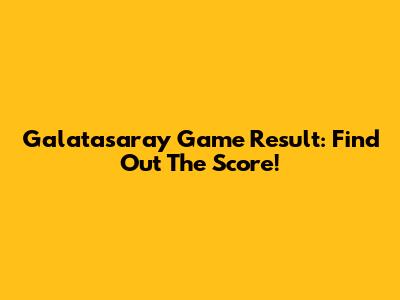 Galatasaray Game Result: Find Out The Score!