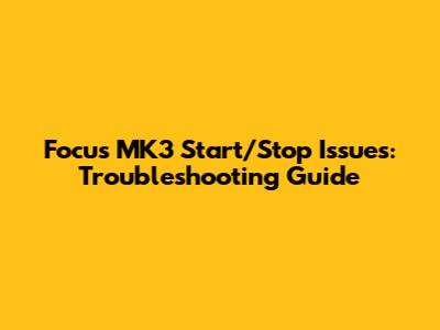 Focus MK3 Start/Stop Issues: Troubleshooting Guide