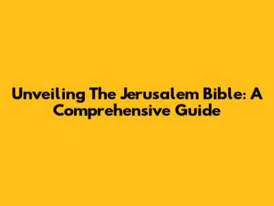 Unveiling The Jerusalem Bible: A Comprehensive Guide