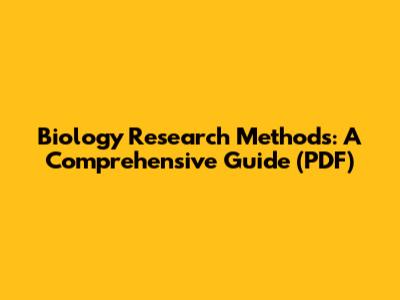 Biology Research Methods: A Comprehensive Guide (PDF)