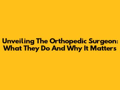Unveiling The Orthopedic Surgeon: What They Do And Why It Matters