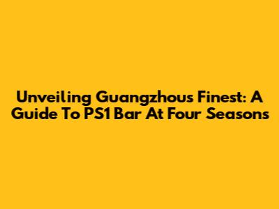 Unveiling Guangzhou's Finest: A Guide To PS1 Bar At Four Seasons