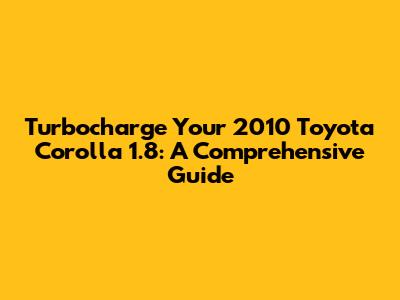 Turbocharge Your 2010 Toyota Corolla 1.8: A Comprehensive Guide