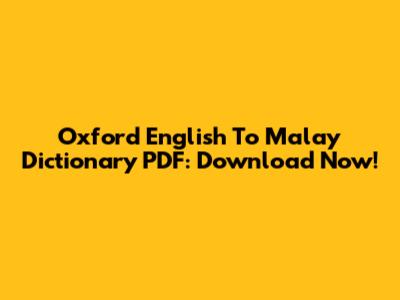 Oxford English To Malay Dictionary PDF: Download Now!