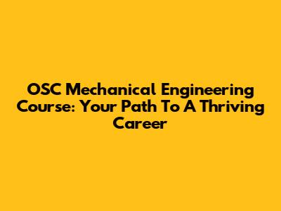 OSC Mechanical Engineering Course: Your Path To A Thriving Career