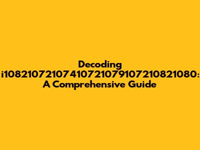 Let's dive deep into understanding what i10821072107410721079107210821080 actually means. The string might seem like gibberish at first glance, but it likely represents encoded information. Our mission here is to demystify this jumble, explore its potential origins, and provide some practical steps you can take to decode similar strings you might encounter. Understanding the basics of encoding, character sets, and common encoding schemes will be crucial. Think of it as detective work – we're piecing together clues to reveal the underlying message. We'll cover common encoding methods such as ASCII, UTF-8, and hexadecimal representations. We will also explore techniques such as frequency analysis and pattern recognition that might help you break down the code. Whether you are a seasoned coder, a curious student, or just someone intrigued by cryptography, this guide will equip you with the knowledge and tools you need. Keep in mind that this kind of decoding can be like solving a puzzle, and sometimes a bit of educated guessing might be involved.
