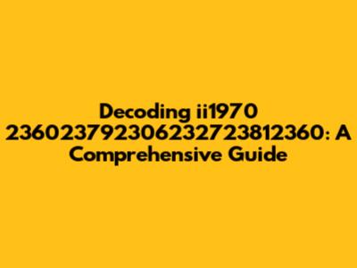 Let's dive into the enigmatic string ii1970 236023792306232723812360. At first glance, it might seem like a random assortment of characters and numbers. However, breaking it down and understanding its components can reveal interesting insights. This article aims to dissect this string, exploring potential interpretations, contexts, and applications. We’ll look at each segment individually and then consider possible combined meanings. Whether it's a date, a code, or simply a unique identifier, we'll explore all the angles to give you a comprehensive understanding. Think of this as a detective's journey, where each clue helps us unravel the bigger picture. Understanding such strings is increasingly relevant in today's data-driven world. From identifying timestamps to decoding encrypted messages, the ability to interpret alphanumeric sequences is a valuable skill. So, let's put on our thinking caps and get started. By the end of this article, you'll have a clearer idea of what ii1970 236023792306232723812360 could possibly mean and how it might be used. We will investigate the individual elements and their potential implications. Furthermore, we will consider the context in which this string might appear. So, stay with us as we decode this complex sequence.