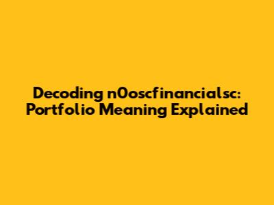 Understanding the ins and outs of financial portfolios can often feel like navigating a complex maze. When you come across terms like n0oscfinancialsc, it's natural to feel a bit lost. Let's break down what this term might imply in the context of financial portfolios, making it easy for anyone to grasp. Whether you're a seasoned investor or just starting, knowing the basics is crucial. We'll explore different angles and provide clarity, so you can confidently manage your investments. So, let's dive in and demystify n0oscfinancialsc together!