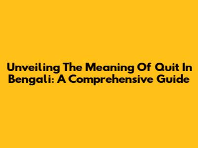 Unveiling The Meaning Of 'Quit' In Bengali: A Comprehensive Guide