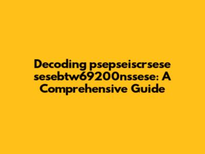 Let's dive deep into the world of psepseiscrsese sesebtw69200nssese. I know, it sounds like something out of a sci-fi movie, right? But stick with me, guys, because we're going to break down what this intriguing term could possibly mean. Sometimes, these alphanumeric strings pop up in various contexts, and understanding them can be super helpful. So, what could "psepseiscrsese sesebtw69200nssese" possibly refer to? It might be a specific product code, a serial number, a reference ID, or even a randomly generated identifier used in a database. Think of it like this: every product, every transaction, every digital interaction needs a unique tag to keep things organized. This tag, my friends, could very well be our mysterious string.