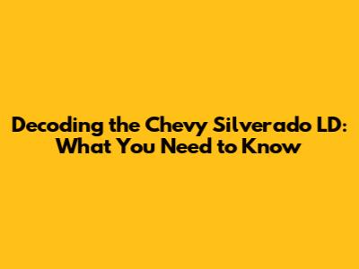 Hey there, truck enthusiasts! Ever wondered about the Chevy Silverado LD and what it signifies? Well, you're in the right place! We're diving deep into the meaning of LD in the context of the Silverado, unpacking its significance, and exploring what it means for you, the potential buyer or current owner. Let's get started, shall we?