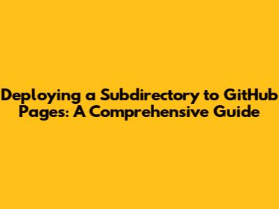 Hey guys! Ever found yourself in a situation where you need to deploy a specific subdirectory of your project to GitHub Pages? It's a common scenario, especially when you have multiple projects within a single repository or want to host a specific part of your website separately. Don't worry; it's totally doable! This guide will walk you through the process step-by-step, ensuring you can easily deploy your subdirectory to GitHub Pages. Let's dive in!