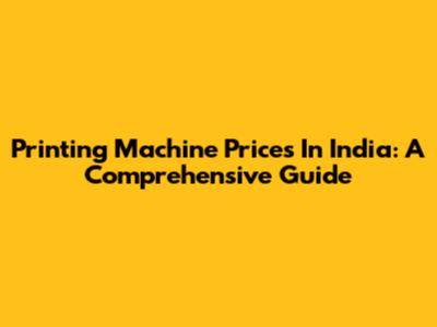 Printing Machine Prices In India: A Comprehensive Guide