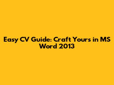 Creating a professional CV in MS Word 2013 is totally achievable with the right approach. By focusing on structure, formatting, and content optimization, you can craft a CV that grabs attention and highlights your unique qualifications. Remember to tailor your CV to each job you apply for, and always proofread carefully before submitting. Good luck, and get ready to nail that dream job! Creating a standout Curriculum Vitae (CV) is crucial in today's competitive job market. A well-crafted CV can significantly increase your chances of landing an interview. If you're using Microsoft Word 2013, you're in luck! This guide will walk you through the process of creating a professional-looking CV using MS Word 2013. Let's dive in and get you noticed!