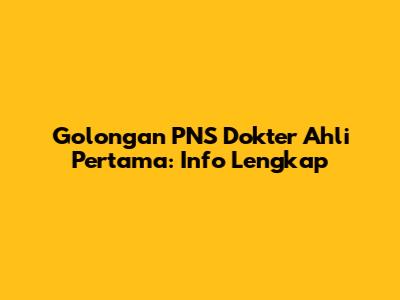 Golongan PNS Dokter Ahli Pertama: Info Lengkap