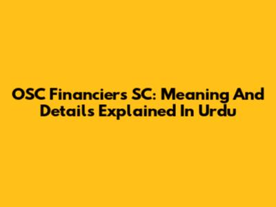 OSC Financiers SC: Meaning And Details Explained In Urdu