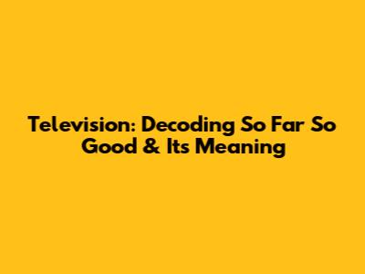 Television: Decoding 'So Far So Good' & Its Meaning