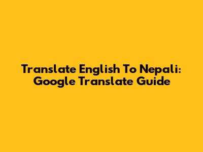 Translate English To Nepali: Google Translate Guide