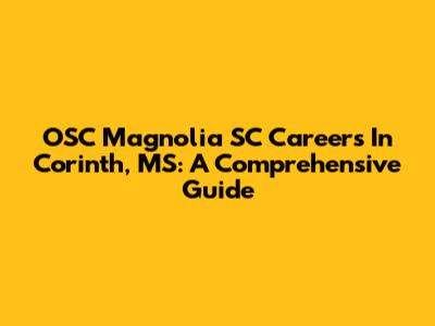 OSC Magnolia SC Careers In Corinth, MS: A Comprehensive Guide