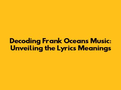 Hey music lovers! Ever found yourself utterly captivated by Frank Ocean's music, getting lost in the unique blend of R&B, soul, and those oh-so-intriguing lyrics? Well, you're not alone! Frank Ocean is a master storyteller, and his songs are like intricate puzzles just waiting to be solved. But let's be real, sometimes deciphering the meaning behind the music can feel like a mission! Don't worry, we're here to dive deep into the fascinating world of Frank Ocean, exploring some of his most iconic tracks and uncovering the stories they tell. Ready to unlock the secrets hidden within his music? Let's get started!