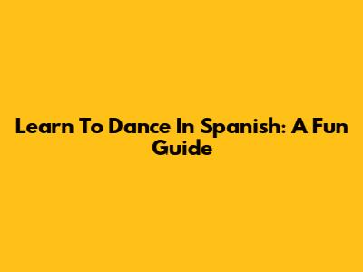 Learn To Dance In Spanish: A Fun Guide