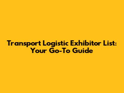 Transport Logistic Exhibitor List: Your Go-To Guide