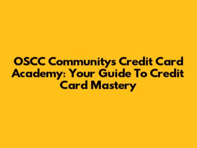 OSCC Community's Credit Card Academy: Your Guide To Credit Card Mastery