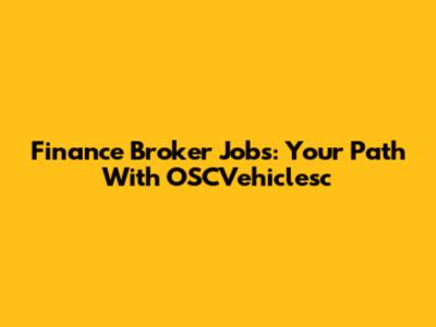 Finance Broker Jobs: Your Path With OSCVehiclesc