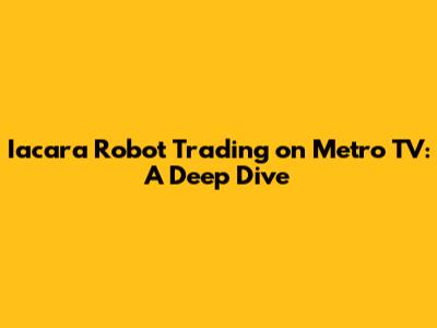 - The Basics: Metro TV probably started with a clear explanation of what Iacara Robot Trading is. They most likely explained that it's an automated trading system that uses algorithms to execute trades. The goal here is to get viewers up to speed on the core concept quickly.