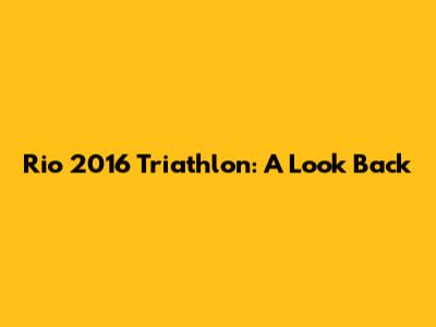 Rio 2016 Triathlon: A Look Back
