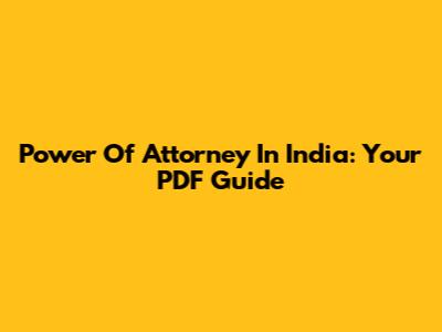 Power Of Attorney In India: Your PDF Guide
