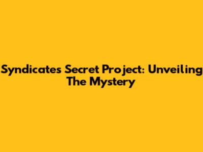 Syndicate's Secret Project: Unveiling The Mystery