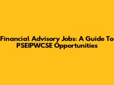 Financial Advisory Jobs: A Guide To PSEIPWCSE Opportunities