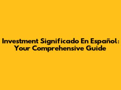 Investment Significado En Español: Your Comprehensive Guide