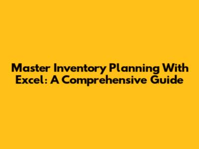 Master Inventory Planning With Excel: A Comprehensive Guide
