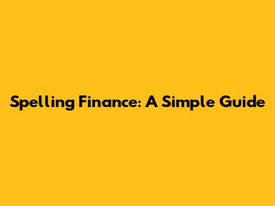 Spelling Finance: A Simple Guide