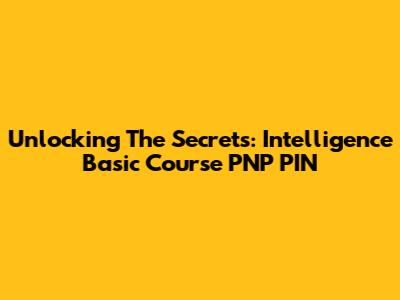 Unlocking The Secrets: Intelligence Basic Course PNP PIN