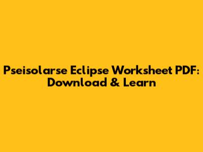 Pseisolarse Eclipse Worksheet PDF: Download & Learn