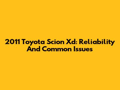 2011 Toyota Scion Xd: Reliability And Common Issues