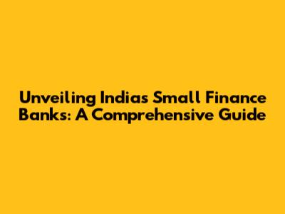 Unveiling India's Small Finance Banks: A Comprehensive Guide