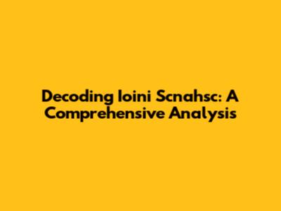 Decoding Ioini Scnahsc: A Comprehensive Analysis