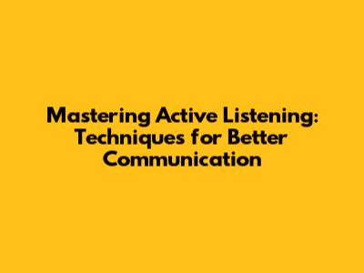 Key Techniques for Active Listening