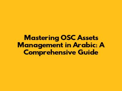 Let's explore some of the tools and technologies that can help you excel at OSC assets management in Arabic.