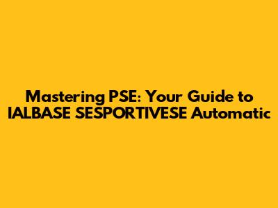 Hey guys! Ever felt like you're drowning in the sea of PSE and IALBASE SESPORTIVESE Automatic? Don't worry, you're not alone! This comprehensive guide will break down everything you need to know, making you a pro in no time. Let's dive in!