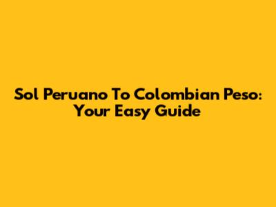 Sol Peruano To Colombian Peso: Your Easy Guide