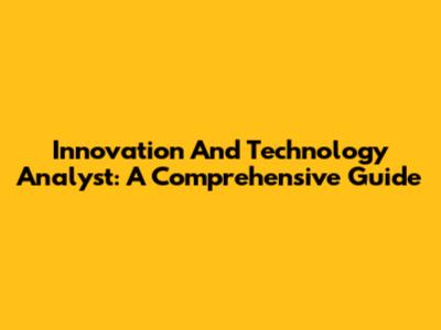 Innovation And Technology Analyst: A Comprehensive Guide