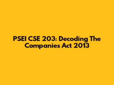 PSEI CSE 203: Decoding The Companies Act 2013